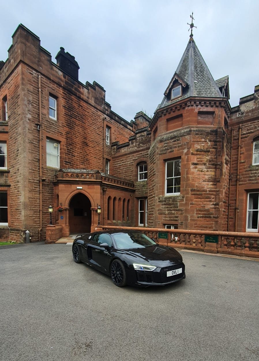 We have an Audi R8, V10 plus, with 610bhp and some mind blowing performance to leave you speechless… 5.2 litre engine, will provide a 0-60 in 3 seconds and a top speed of 205mph… we will get him to the church on time…!!